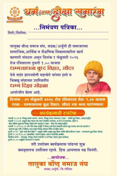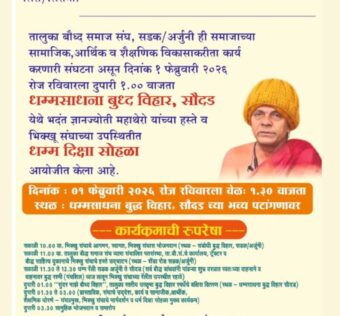 तालुका बौद्ध समाज संघातर्फे सौंदड येथे धम्मदीक्षा समारंभ 1 फेब्रुवारी रोजी
