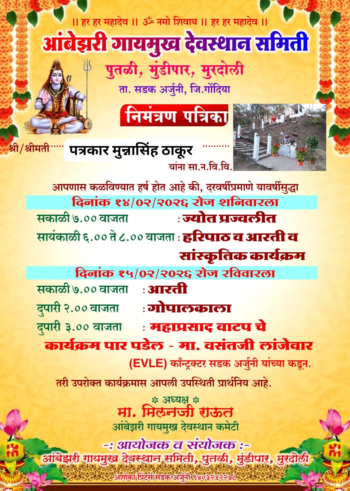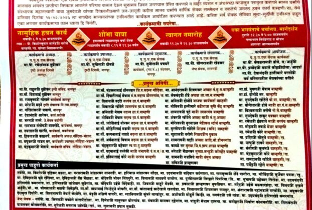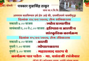 निधन वार्ता ब्राह्मणी खडकी = येथील रहिवासी स्व. मंसाराम रामचंद्र चूटे (वय वर्षे 62) यांचे आज दिनांक 05/02/2026 रोजी रात्री 11:45 वाजता अचानक दुःखद निधन झाले. त्यांच्या पश्चात २ मुले, नातू-नातवंडे असा मोठा आप्तपरिवार आहे. त्यांचे अंतिम संस्कार आज दिनांक 06/02/2026 रोजी ब्राह्मणी खडकी येथील स्मशानभूमीत दुपारी 11:00 वाजता करण्यात येणार आहेत. ईश्वर त्यांच्या आत्म्यास […]