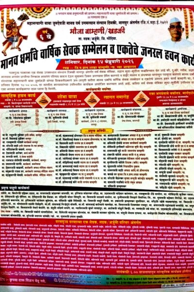 बामणी-खडकी येथे मानवधर्माचे वार्षिक सेवक संमेलन व एकतेचे जनरल हवन 14 फारवरी ला