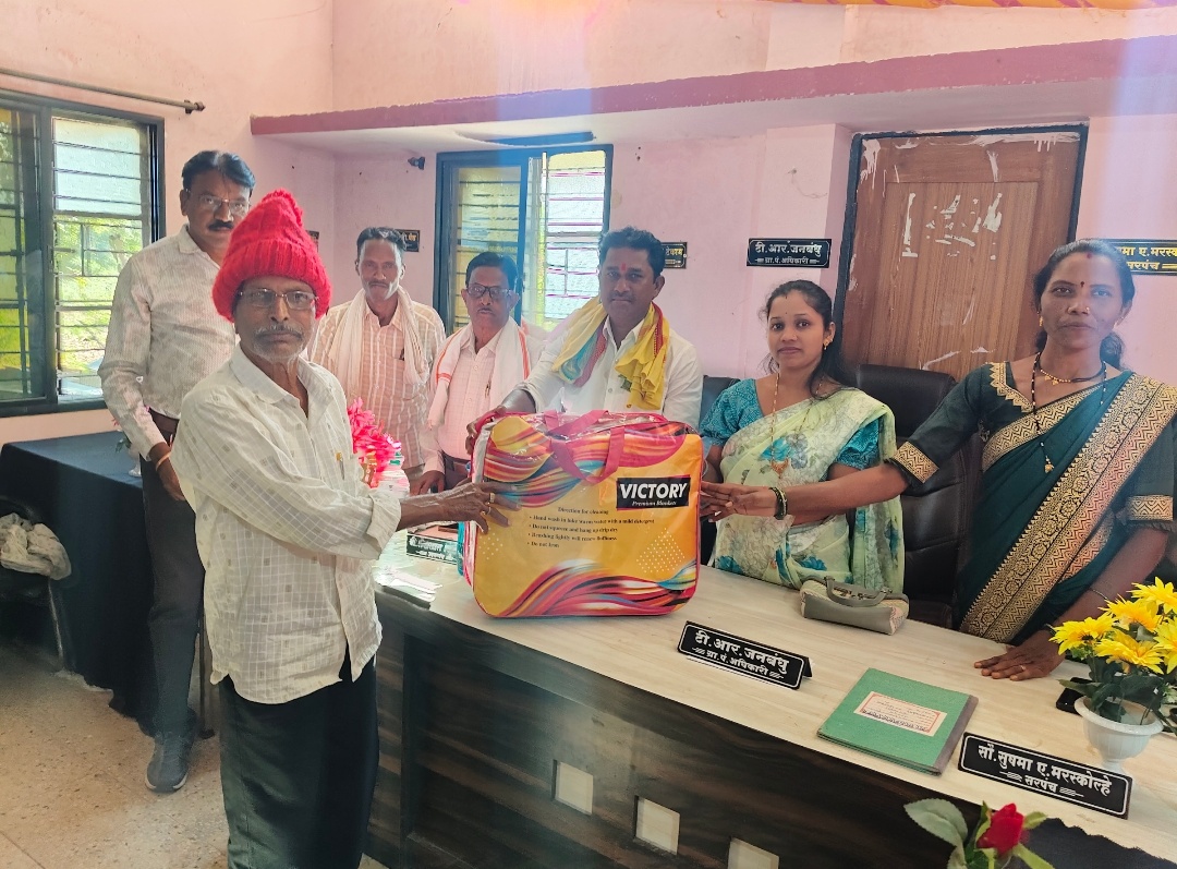 राजगुडा ग्रामपंचायततर्फे दिव्यांग बांधवांना ब्लॅंकेट वितरण व अंगणवाडी केंद्राला गॅस कनेक्विशन चे वितरण उमेद–मावीम अभियानासाठी म्याटिंगचे वाटप